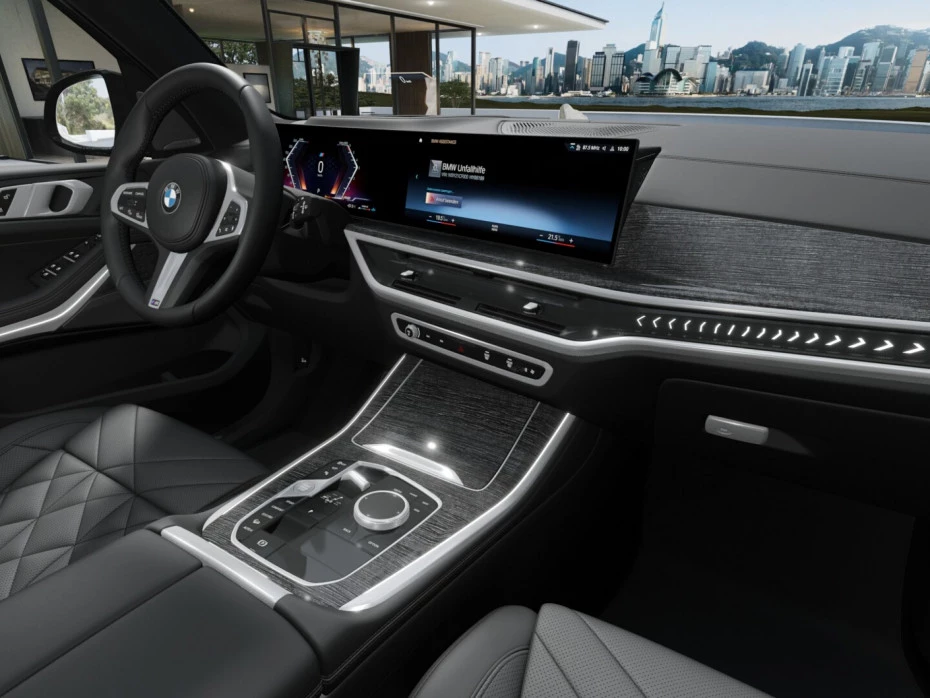 - Acabados de lujo: pomo de la palanca de cambios en negro piano, consola central en madera o símil madera, puertas en cuero y tablero en madera y aluminio