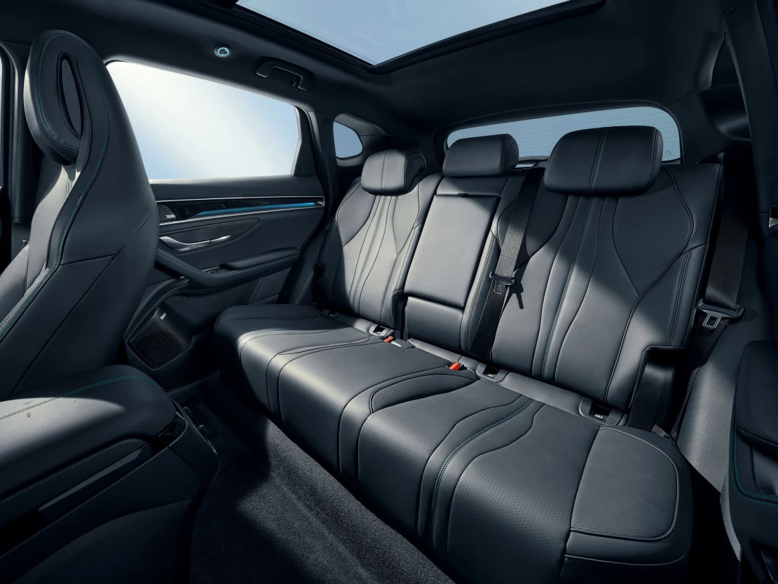 - Cinturón de seguridad trasero en lado conductor con pretensores, cinturón de seguridad trasero en lado acompañante con pretensores, cinturón de seguridad trasero en asiento central de 3 puntos