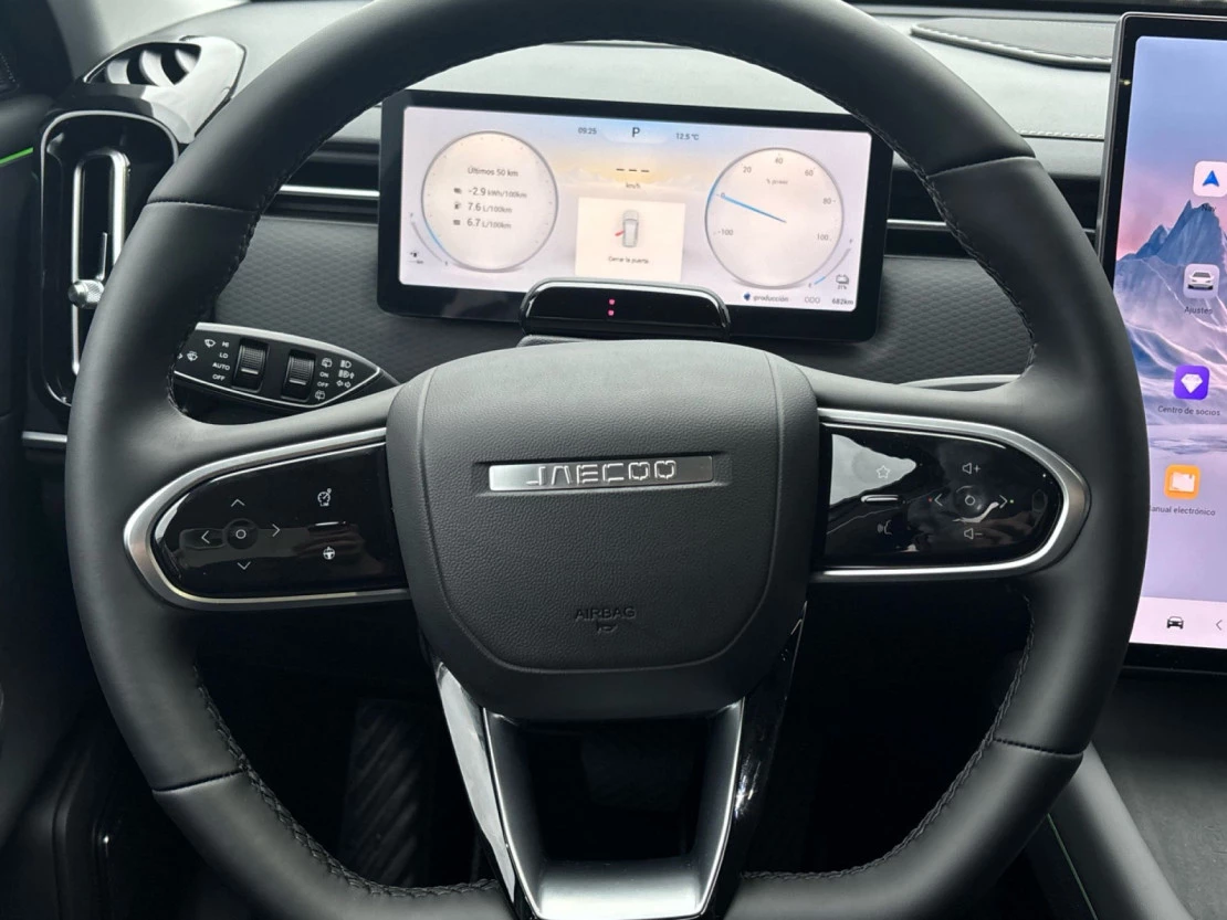 - Acabados de lujo: pomo de la palanca de cambios en negro piano, consola central en negro piano, puertas en cuero sintético y tablero en aluminio y cuero sintético