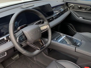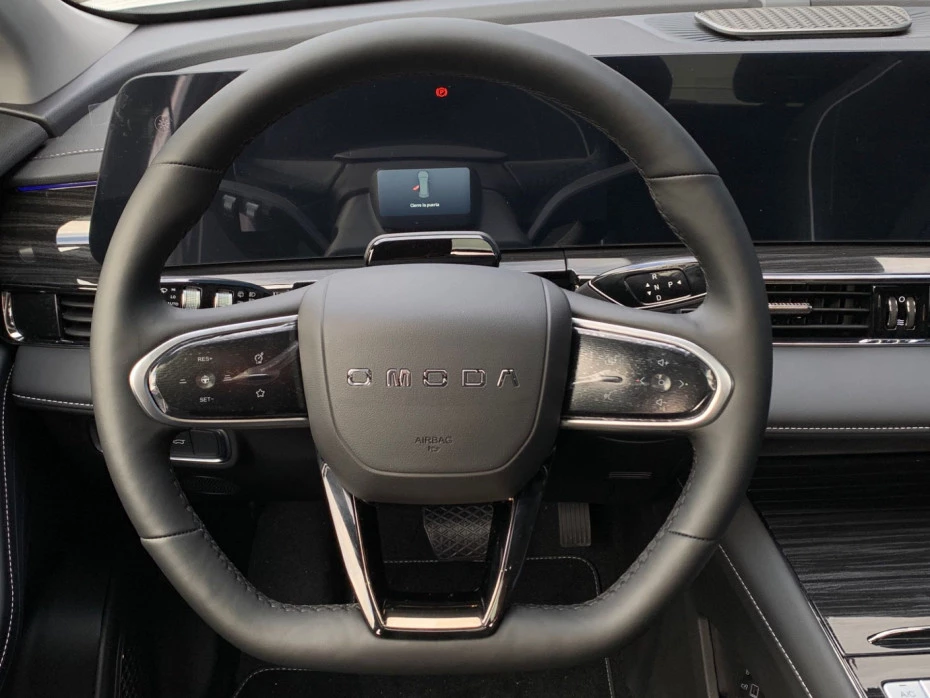 - Acabados de lujo: consola central en negro piano, puertas en cuero sintético y tablero en aluminio y cuero sintético