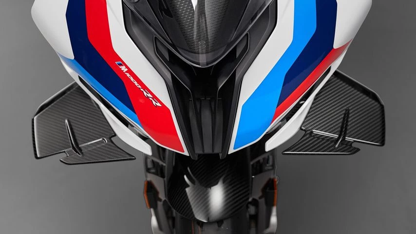 Godoy destaca los colores M asimétricos que luce la M 1000 RR“diferente tanto por el lado izquierdo como por el derecho. Las aletas de carbono, impresionantes, permiten que en circuito nos ofrezcan casi doce kilos de empuje en el tren delantero y unos tres kilos aproximados en la parte trasera, es decir, toda la tecnología M para para este modelo”.